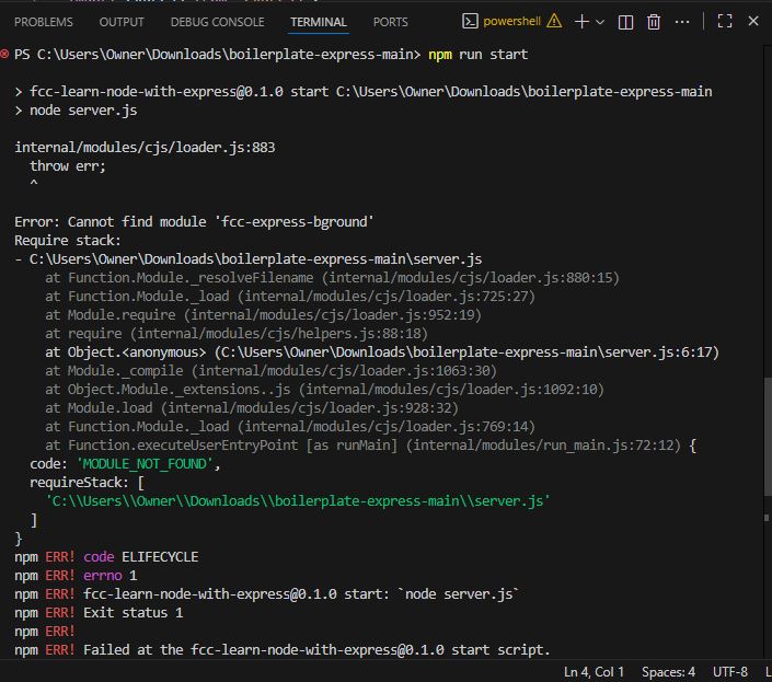 I put console.log(“Hello World”) in the myApp.js file and tried to start the node server with npm run start but I am getting errors. Please help and thank you.