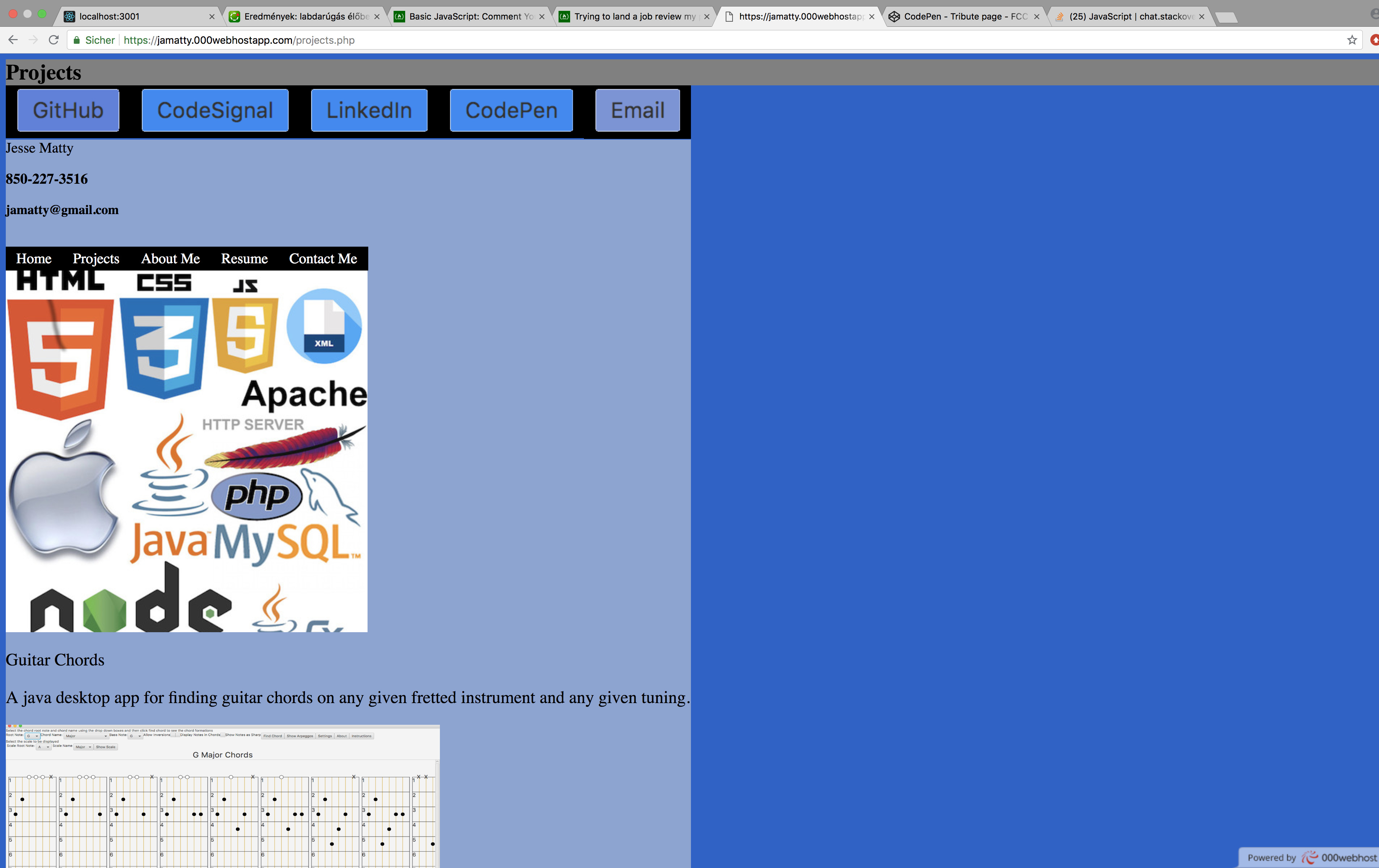 Here is my personal site https://jamatty.000webhostapp.com/index.php there is also a link to download my resume on my site if you could have a look at that too that would be nice.