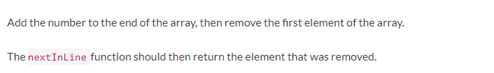 âthen remove the first element of the array.â and " The nextInLine function should then return the element that was removed." are actually one line of code ?